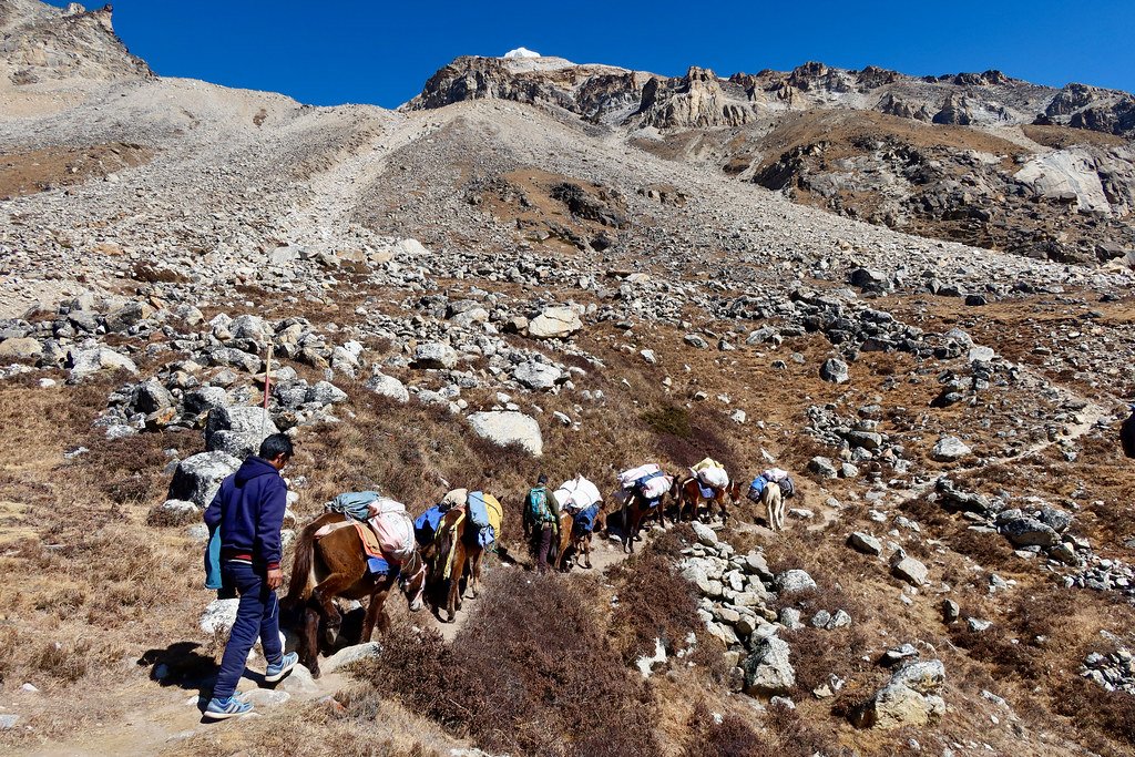 Equipment: All high-altitutde tents, kitchen gear, fuel, oxygen cylinders, ropes, climbing specific equipment and communication (Sat phones, VHF).