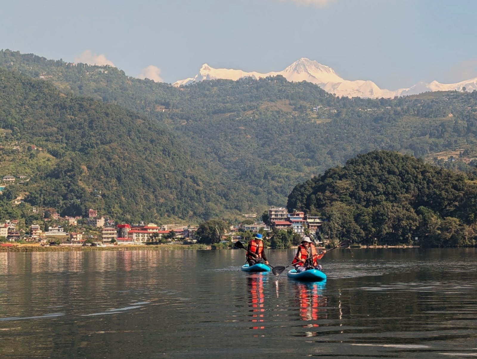 Boating and paddleboarding on Nepal’s Fewa Lake offer serene, iconic experiences with stunning Annapurna Mountain reflections, especially at sunrise/sunset, featuring colorful rowboats (Daunt), paddle boats, and increasingly popular SUPs/kayaks, allowing visits to the central Tal Barahi Temple for spiritual vibes or quiet exploration, with rentals available hourly, often including life jackets for safety amidst picturesque Pokhara scenery.